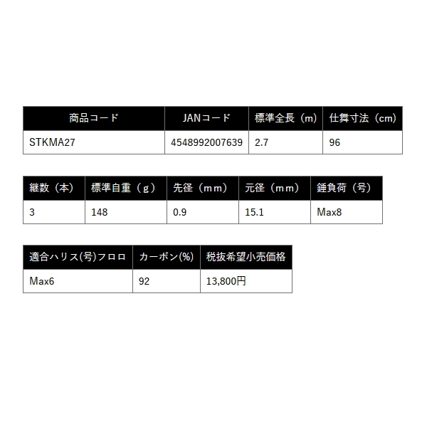 ≪'25年9月新商品!≫ PROX 攻棚海上脈釣AIR-K STKMA27 〔仕舞寸法 96cm〕 【保証書付き】 [px-007639]
