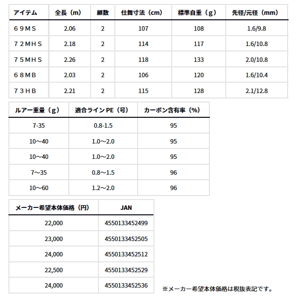 オープンウォーターの釣りにウエイトを置いて開発した遠投モデル。中・大型ミノーやトップウォータープラグ、バイブレーションなどを遠投して、シーバスや青物を探るスタイルに最適。ベリーに張りがあるのでワームの操作性も秀逸。フラットフィッシュやロックフィッシュのワームゲームにも対応する。ボートに乗る際に必ず備えておきたいマストアイテム。