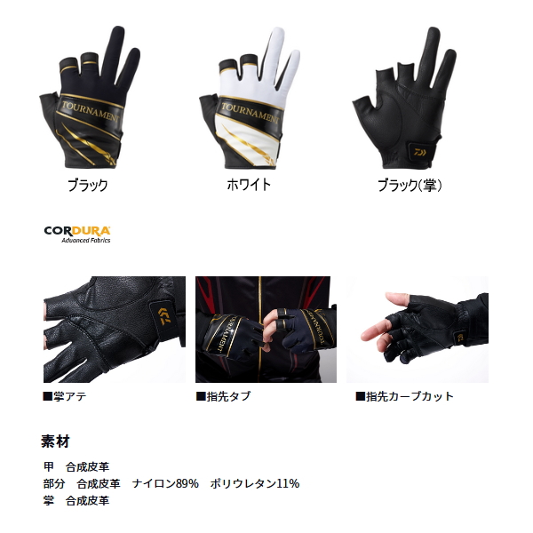 ≪'25年9月新商品!≫ ダイワ トーナメント グローブ 3本カット DG-1225T ブラック Lサイズ [da596490]