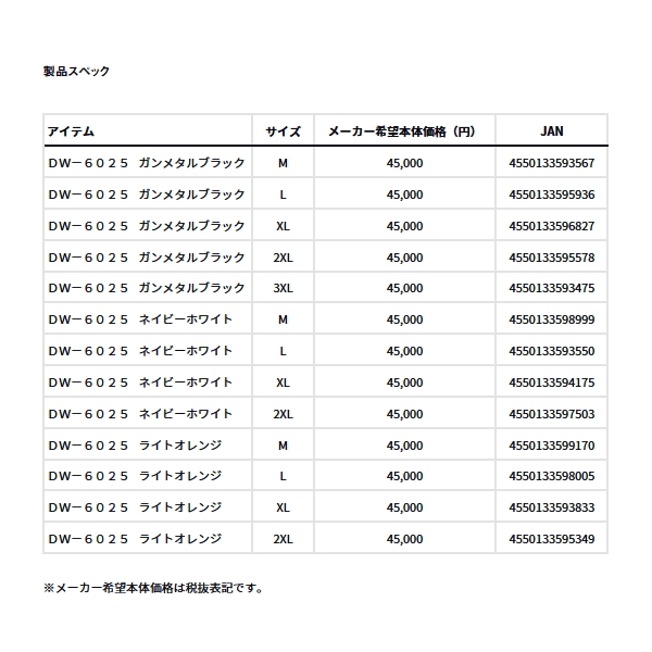 (25年10月新商品) ダイワ PUオーシャンウィンタースーツ DW-6025 ネイビーホワイト 2XLサイズ