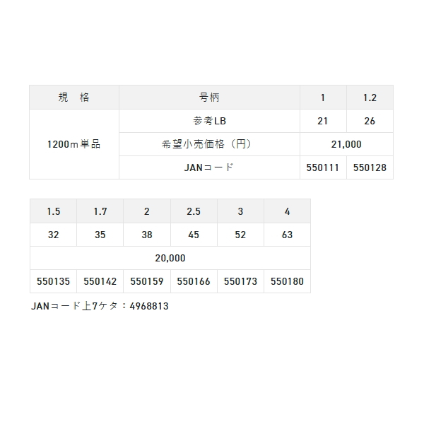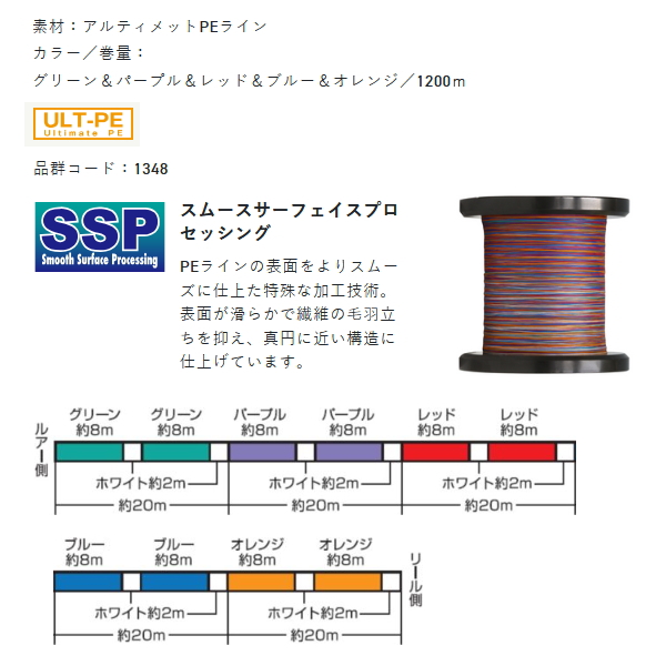 ●Smooth Surface Processing(SSP)を採用し、糸に張り付く水中抵抗を最小限に抑え、いち早く深海へとジグを届け、深海でも意のままにジグを操れる確かな操作感を実現。ねらう水深が深くなるほどにその性能は発揮され、唯一無二のラインとしてアングラーに確かな情報を伝えます。