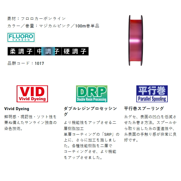 ●ライン表面に硬質(ハード)な特性を付与させた船釣り仕掛け専用ハリスに「マジカルピンクカラー」を搭載。