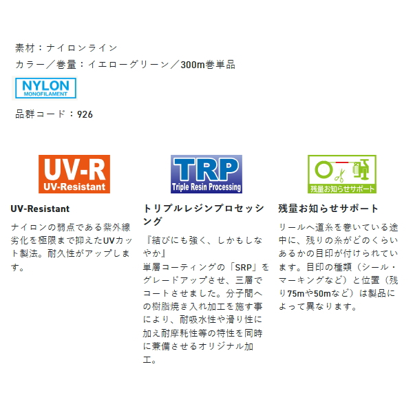 ●糸グセがつきにくく、適度な伸びのあるしなやかな糸質が遠投の際、さらなる飛距離を生み出します。