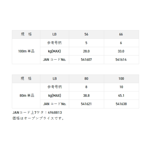 ●5号・6号はオープンウォーターでのロングキャストに。8号・10号はハードブッシュに対応します。