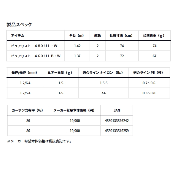 (25年12月新商品) ダイワ ピュアリスト 48XUL・W (仕舞寸法 74cm) [da546242]