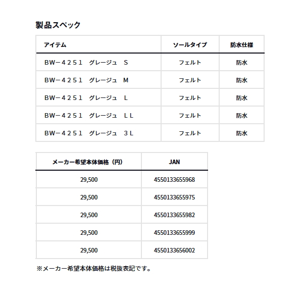 (25年12月新商品) ダイワ ブレスウェーダー(フェルトソール) BW-4251 グレージュ Mサイズ