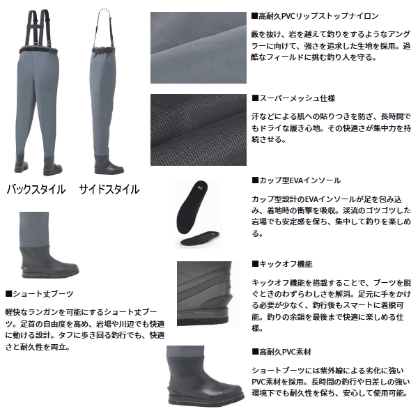 藪漕ぎにも対応するタフさを備えつつ、快適性と機能性を徹底的に追求。