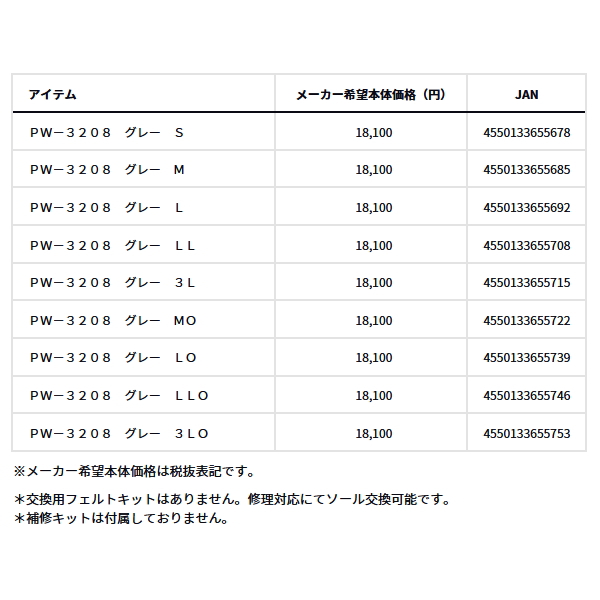 (25年12月新商品) ダイワ パワーウェーダー(フェルトソール) PW-3208 グレー 3LOサイズ