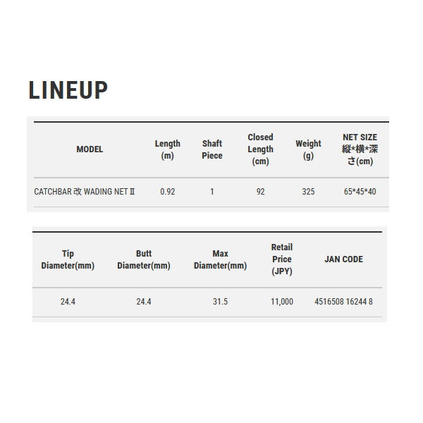 ◆フックの絡みにくい軽量ナイロンネットを採用したモデルII。ネットサイズ:65×45cm、網の深さ:40cm。シャフトは伸縮しないタイプです。
