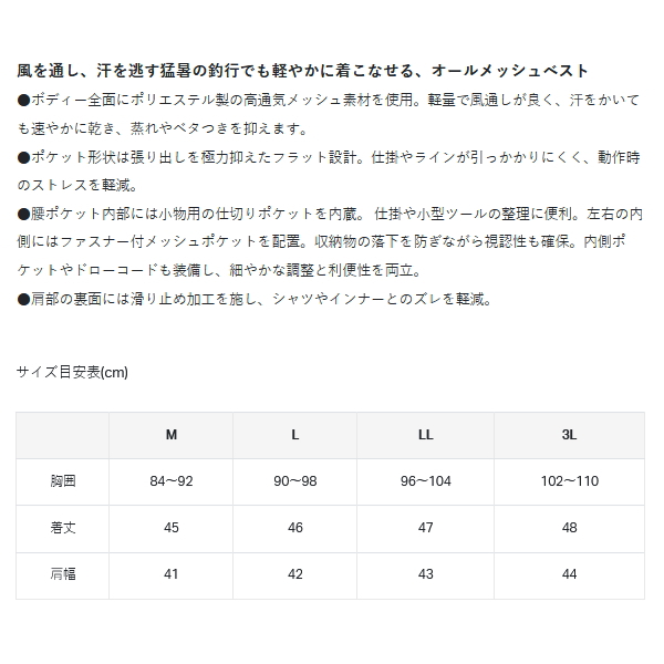◆風を通し、汗を逃す猛暑の釣行でも軽やかに着こなせる、オールメッシュベスト