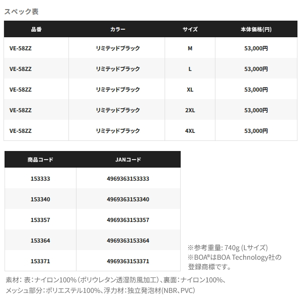(26年3月新商品) シマノ リミテッド プロ ガードベスト VE-58ZZ リミテッドブラック Lサイズ (3月発売予定/ご予約受付中)