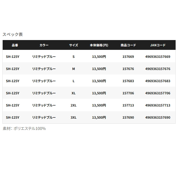 (26年3月新商品) シマノ リミテッド プロ ハーフジップシャツ ショートスリーブ SH-125Y リミテッドブルー Mサイズ (3月発売予定/ご予約受付中)