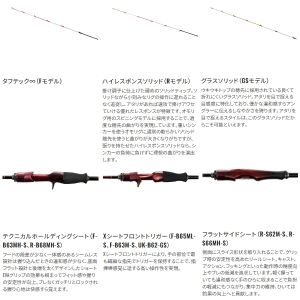 近年、そのゲーム性から各所で人気が高まっているオモリグに対応した、レギュラーテーパーを採用。20〜40号のオモリを使用したリグに最適化された、ミディアムヘビーモデルです。水深は約20〜100m+αに対応。幅広いレンジを探ることが可能。重めのウェイトを使用しながらも、エギはナチュラルに漂わせ、繊細なアタリも確実に掛けていくようなゲームを楽しみたいアングラーにピッタリの1本となっています。