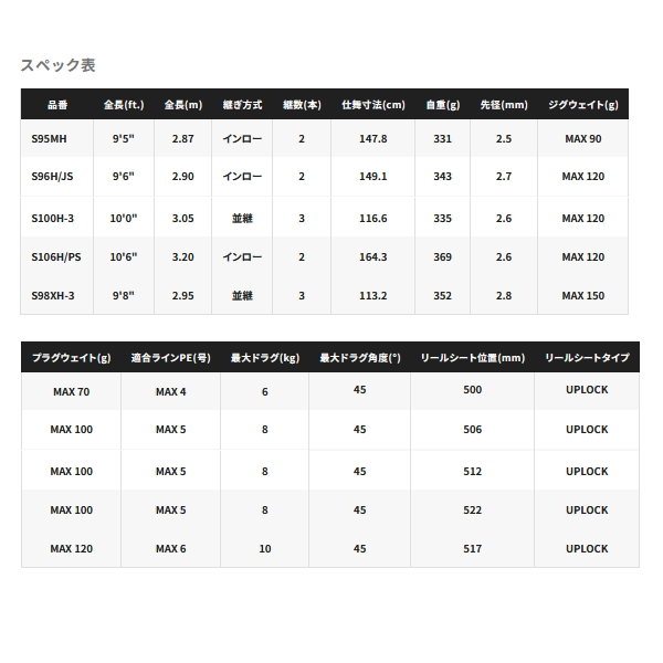 [並継]・[ステップレングスデザイン]を採用したパワースペック。プラグ操作はもちろんジグ操作時でも軽快なレスポンスを追求し、やや短めに設定したレングスはパワーロッドにありがちなダルさを払拭し、軽快なロッドアクションをサポート。