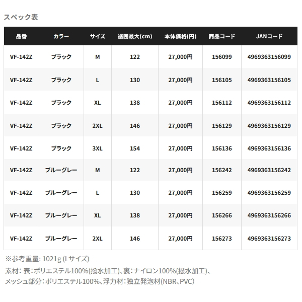 (26年3月新商品) シマノ フローティングベスト VF-142Z ブルーグレー 2XLサイズ (3月発売予定/ご予約受付中)