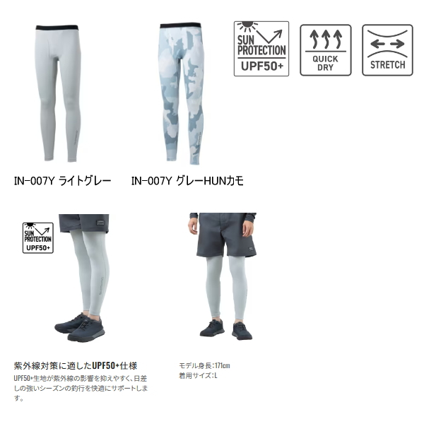 (26年3月新商品) シマノ サン プロテクション インナータイツ IN-007Y ライトグレー XLサイズ (3月発売予定/ご予約受付中)