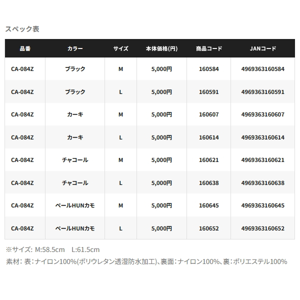 (26年3月新商品) シマノ レインキャップ CA-084Z ブラック Mサイズ (3月発売予定/ご予約受付中) [160584]