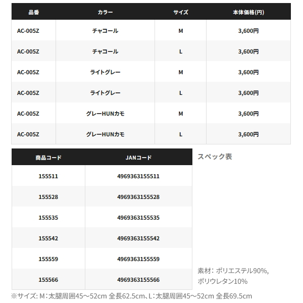 (26年3月新商品) シマノ レッグカバー AC-005Z ライトグレー Lサイズ (3月発売予定/ご予約受付中)