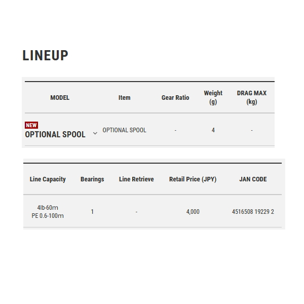 ◆クロスピアCPにインストール可能なオプショナルスプール。肉厚を0.3mmまで落とし込んだ超シャロースプール。MONO 4Lb-60m / PE0.6号100mのキャパシティで4gの自重を達成。