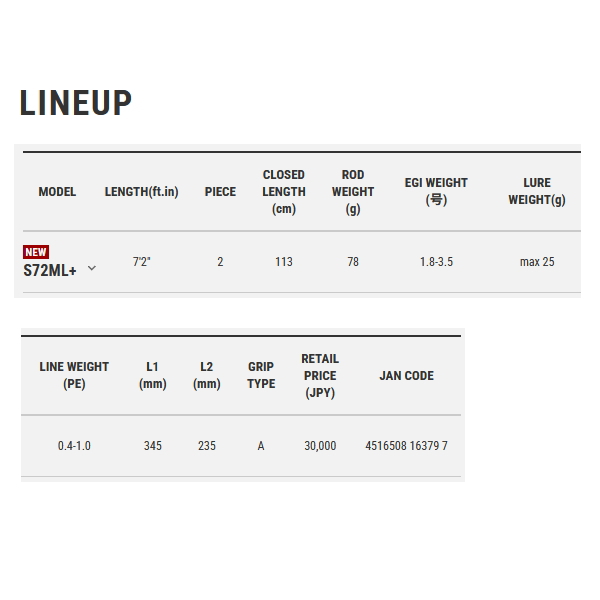 自重:78g。ティップとバットにパワーのギャップを持たせることで、イカの活性を問わず、シーズン序盤から最盛期、終盤まで幅広いシチュエーションに対応。堤防や磯場などのショアはもちろん、ボートエギングでも力を発揮する、汎用性の極めて高い短尺モデル。