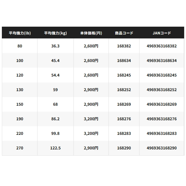 オフショアプラッギングでの使いやすさを追求したナイロンリーダー。特に拘ったのが使用感を向上する“しなやかさ”。ノットの締め込みがしやすく、糸癖も付きにくい。キャスト時のガイド抜けもスムーズ。しなやかでありながらも、ファイト時は伸びすぎず、しっかりと踏ん張ります。強度にも拘りがあり、新品状態はもちろん、使用時の吸水低下も視野に設計。魚に見切られにくいピュアクリアを採用しました。