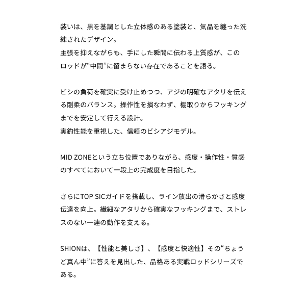 ビシの負荷を確実に受け止めつつ、アジの明確なアタリを伝える剛柔のバランス。