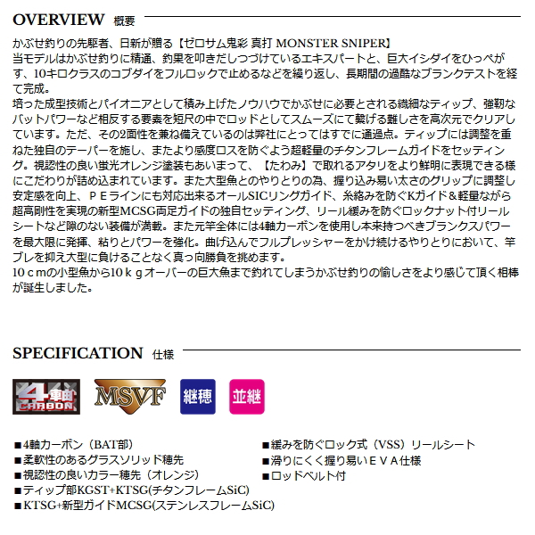 かぶせ釣りの先駆者、日新が贈る【ゼロサム鬼彩 真打 MONSTER SNIPER】