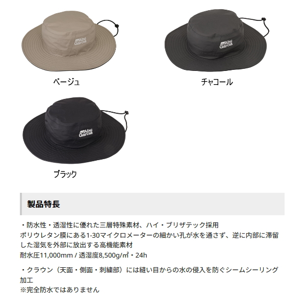 (26年4月新商品) アブガルシア 3レイヤー ナイロンレインハット ブラック フリーサイズ (返品不可)