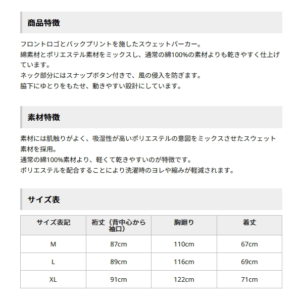 ◆フロントロゴとバックプリントを施したスウェットパーカー。