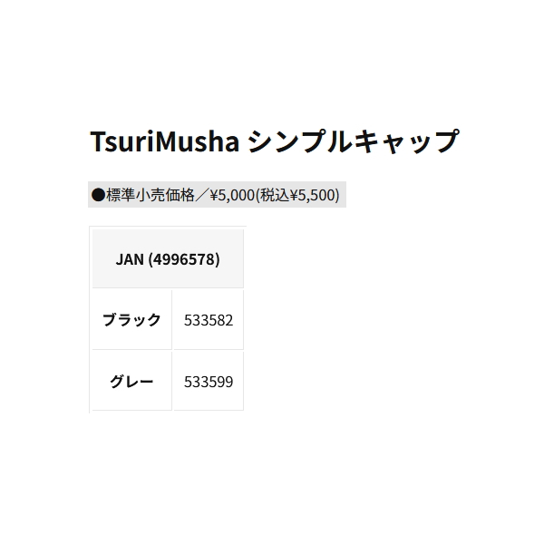 (26年5月新商品) 釣武者 シンプルキャップ グレー フリーサイズ (5月発売予定/ご予約受付中) [tm-533599]