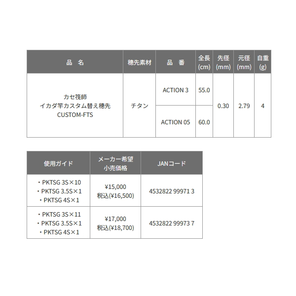 (26年4月新商品) (パーツ) 黒鯛工房 カセ筏師 イカダ竿カスタム替え穂先 カスタム-FTS ACTION 05 (全長 60.0cm) [kd-999737]