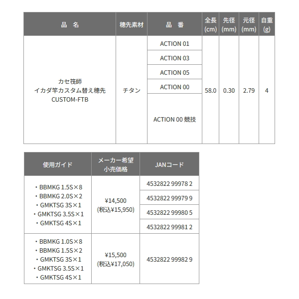 (26年4月新商品) (パーツ) 黒鯛工房 カセ筏師 イカダ竿カスタム替え穂先 カスタム-FTB ACTION 05 (全長 58.0cm) [kd-999805]